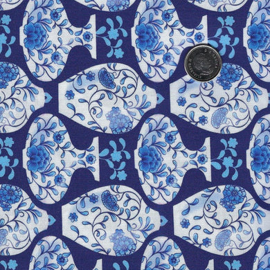 Chinoiserie by Paintbrush Studio Fabrics - Background Dark Blue Porcelain Pots