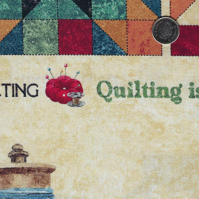 Stonehenge Stitchin' by Deborah Edwards for Northcott - Background Beige Bobin Quilt
