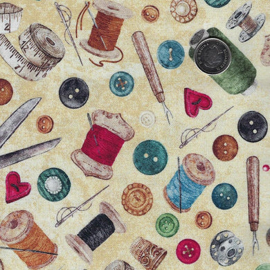 Stonehenge Stitchin' by Deborah Edwards for Northcott - Background Beige Notions