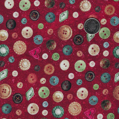 Stonehenge Stitchin' by Deborah Edwards for Northcott - Background Red Buttons