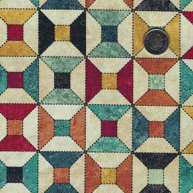 Stonehenge Stitchin' by Deborah Edwards for Northcott - Background Beige Blocks Panel