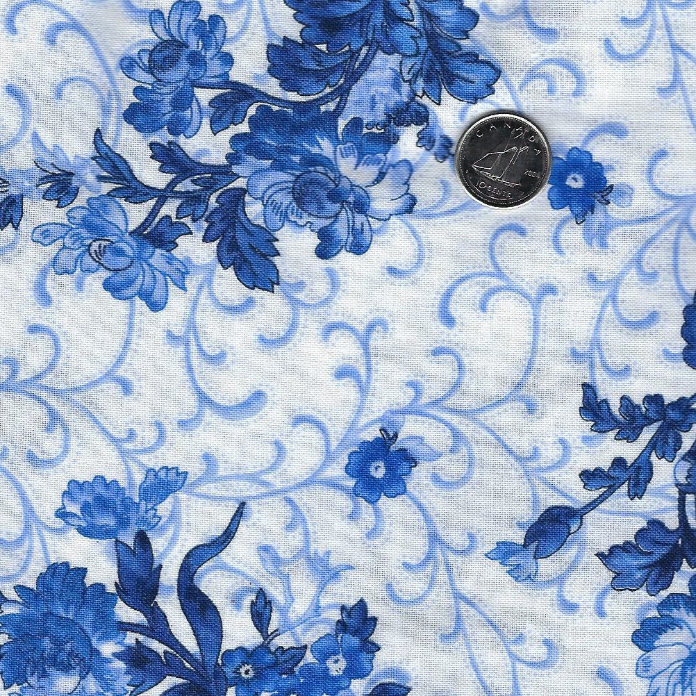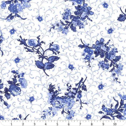 Blue Belle by Maywood Studio - Background White Floral with Scroll